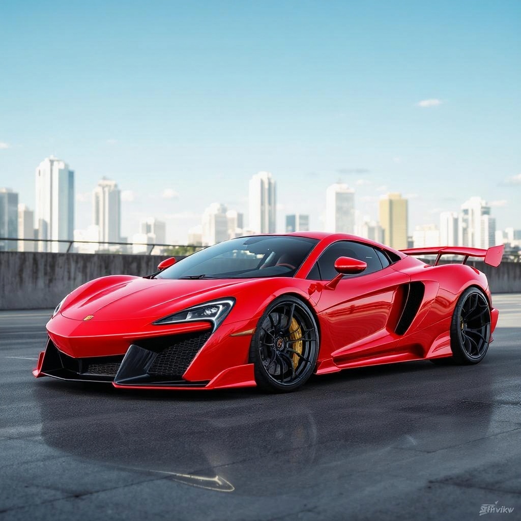 • Change the car color to red. Preserve reflections and keep the rest of the scene unchanged.