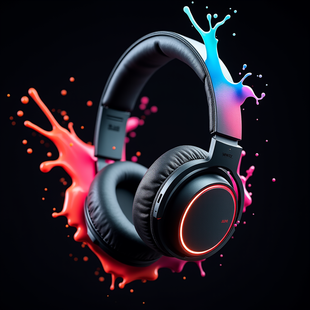Premium headphones floating on a gradient background, studio lighting, clean product photography.