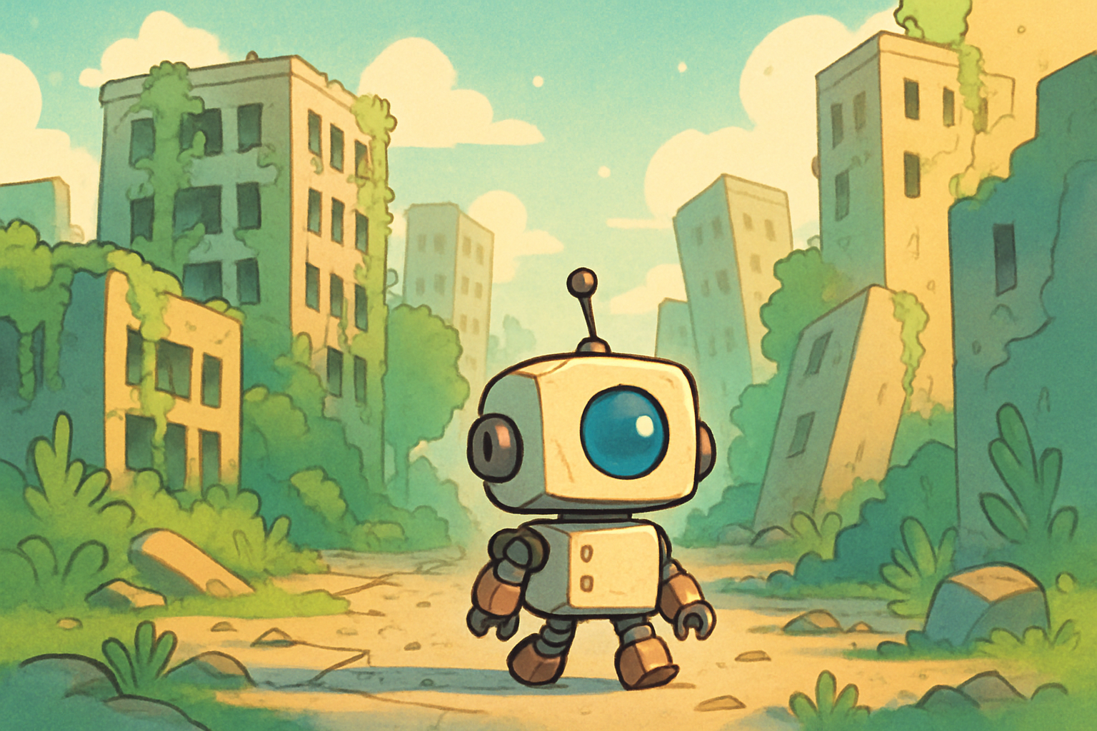 Example: “A small robot exploring an abandoned city, cartoon style, bright colors.”