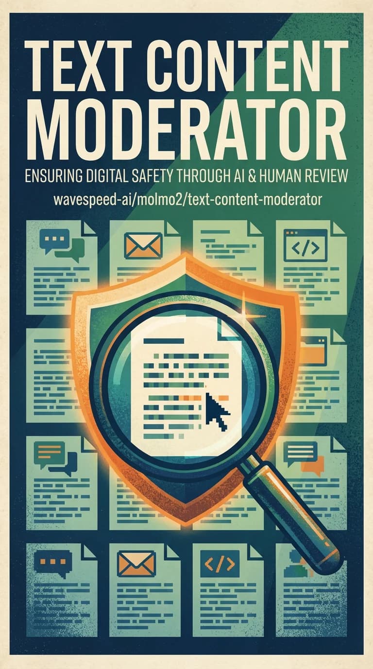 Molmo2-4B Text Content Moderator: Analyze text content for safety, appropriateness, and policy compliance. Detects hate speech, violence, sexual content, and other harmful categories. Open-source vision-language model. Ready-to-use REST API, no cold starts, affordable pricing.